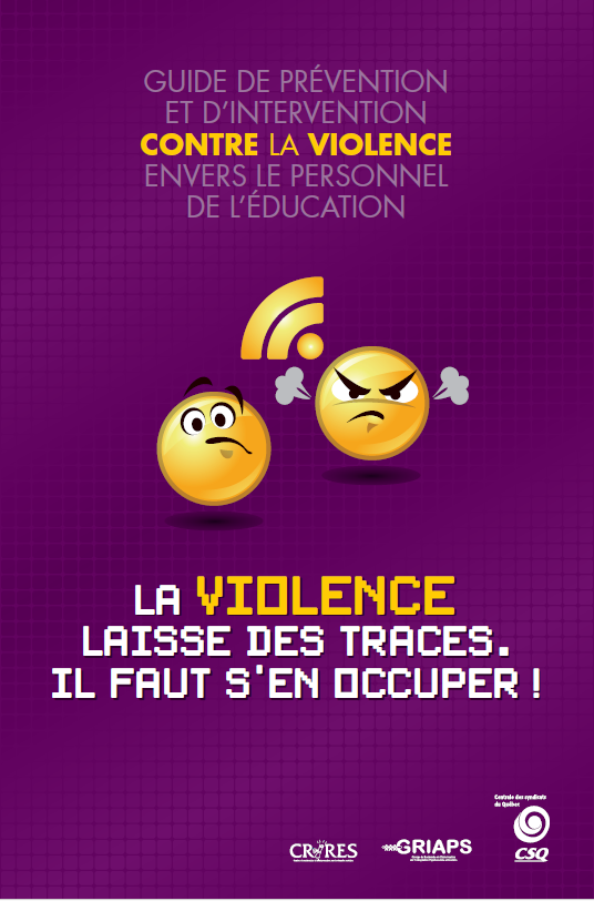 Face à cette situation toujours préoccupante, des actions se poursuivent pour la dénoncer et y faire face. Les fédérations du réseau scolaire[2] et la Centrale des syndicats du Québec (CSQ) ont réalisé un guide de prévention et d’intervention contre la violence envers le personnel de l’éducation.
